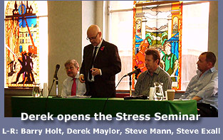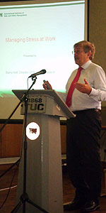 Barry Holt, the Director of Policy & Research for IIRSM and a highly sought speaker on at safety events round the country, opened the seminar. Barry has been involved in health and safety for many years - providing advice to many organisations including Government agencies. He has worked in many parts of the world, including the Middle East, Asia Pacific, USA as well as Europe, and also former Soviet bloc. Whilst companies are limited to help on domestic issues they clearly can control issues that contribute to stress within the workplace. Employees should be encouraged to use their initiative and to develop new skills. Employees should be consulted over work patterns and when breaks can be taken. Barry noted that we need to change the perception that worker admitting to stress is a sign of weakness and a large link in the chain is the relationship between the worker and their manager. Workers must be involved in decision making. Other guest speakers were, Steve Mann, CWU Health & Safety Dept, Steve Exall, HR, BT Operate and BT Innovate and Design, and Dominic Hemsi, MPH Solicitors whose law firm also sponsors this website. Workshop sessions were taken by staff from the mental health charity, MIND. The timetable for the day was as follows: THE MECHANICS OF WORKPLACE STRESS * What is workplace stress? Exercise 1 Stress Pub Quiz A Round Table quiz in which teams answer a series of questions relating to the stress (prevalence, impact, legislative position/protection etc) STIGMA AS A BARRIER TO DISCLOSURE * Why is it a “taboo” subject? Exercise 2 Creating a Mentally Healthy Workplace Delegates will be asked to identify the components of a “mentally healthy workplace” in this exercise. Followed by Feedback and Speaker presentation of example of good practice. Further reports of the day will be published on this website later this week. You can provide us with useful feedback in order for us to develope further and better seminars in the future by filling in a short form here Feedback form You can also take part in the survey we are doing for those who attended the seminar. Take the survey here