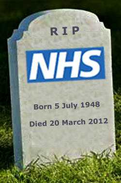 Today 20th March 2012 saw the last nails being driven into the coffin of the National Health Service as the House of Commons voted to accept amendments to the Health Care Services Bill put down by the House of Lords; paving the way for the bill to receive Royal Assent by Easter.