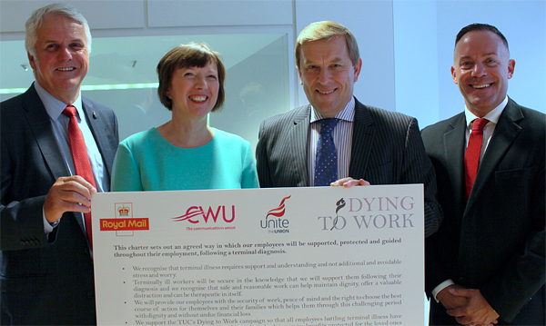 Royal Mail has become the largest UK employer by far to have thrown its weight behind a TUC initiative that aims to ensure that terminally ill workers are treated with dignity and given the support they need to continue in the workplace for as long as they wish.