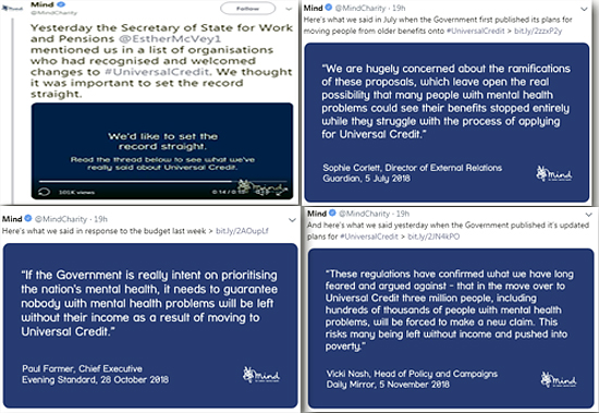 A series of Tweets from Mind has put the record straight in terms of where they stand on the damage done to lives and specifically those with mental health problems by Universal Credit.