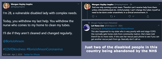 On Twitter today, just two of the disabled people being abandoned by their local NHS have pleaded for help via the social media platform: