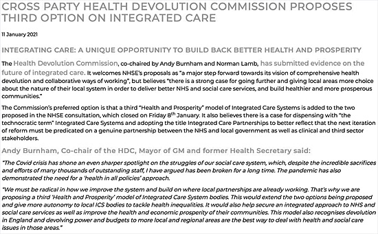As previously reported by Unionsafety, supported by the evidence from the media, healthcare pressure groups, the BMA, BMJ, HSJ, Tory and Labour MPs, NHS England and Government policy papers; the NHS is already splitting up into 42 Americanised Integrated Care Systems that currently have no legal standing and is contrary to the universal and national service of healthcare that the NHS constitution is based upon.