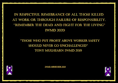 This new plaque will include the poignant words said at last Year’s IWMD event by the late Tony Mulhearn who was an active supporter of International Workers Memorial Day.