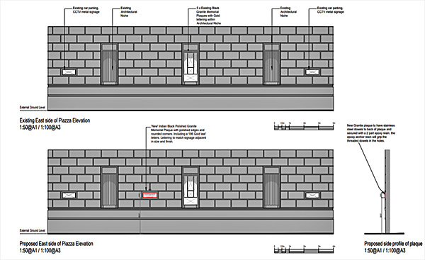 The plaque will measure 940mm x 300mm and will be 30mm deep.