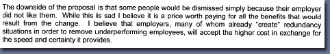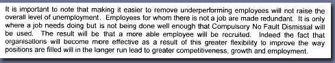 This included the greatest condemnation of his proposals to allow unfettered dismissal at any time of employees, which was removed from the published document: