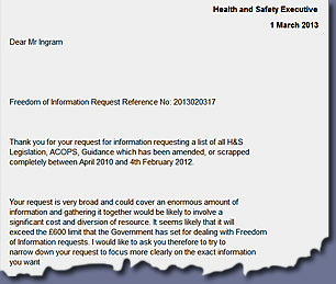 In trying to gather detailed information from the HSE in order to get a complete picture of the damage done so far, Unionsafety web-editor, Chris Ingram, sent a Freedom Of Information request to the HSE in February.