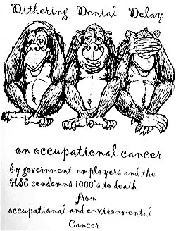 “The Hazards Campaign has accused the HSE of dithering, denying and delaying over occupational cancer, and employers and government are also guilty of doing almost nothing on prevention for all work-cancers.  But this ‘3 monkeys’ approach is especially deadly for work-related cancer in women which has been completely ignored, under-researched and so much less likely to be targeted for preventative action.”  Said Hilda Palmer of the Hazards Campaign.