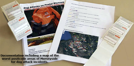 Members of the public are at risk as they go on the daily business and sadly children have been killed by dangerous dogs as the media very quickly reports to the public, yet the laws in this country do not seem adequate to cope with the increases in public incidents of dog attacks. Dave Joyce, the CWU's National Health, Safety and Environment Officer testified to this to the House of Commons Select Committee during this week's Dog Awareness Week run by both the CWU and Royal Mail. One of the major issues he gave evidence on was the idea of Breed Specific Legislation which was first used by Thatcher when she banned certain breeds. This didn't work then and Dave made it clear that the CWU is opposed to such legislation. He said that the CWU quickly found in it's research, that post workers are attacked by any breed of dog and that the idea of BSL is unhelpful and in fact a detraction from the real issue. Dave Joyce made the point that legislation needs to be drawn up to introduce a compensation scheme for victims of dangerous dogs and ensure it is also in place across the whole of the UK. He had previously drawn the committee's attention to the fact that in Scotland, they operate a system of 2 dog attacks and you're out in terms of prosecutions and that the number of cases brought by the police under this system is abysmal. As a result these appalling stats are only going to increase: "82% of attacks take place between the garden gate and the front door" "76% increase in hospital admissions due to dog bites since 2005, and 80% in Scotland since 2005" "Now running at 7,500 hospital admissions a year as a result of dog injuries" On Merseyside, CWU Safety Reps will continue their year-round work in the community to keep the issue of Dangerous Dogs alive in the minds of dog owners and campaign to educate them as to their responsibilities as owners of pets that can, given the right circumstances turn from a docile pet to one of an aggressive and dangerous dog. Working with Royal Mail, BT and organisations as the PDSA, the Dog's Trust and the Merseyside Dog Safety Partnership; the CWU and it's 'small army of life-savers' will continue to do the necessary work that only Union Safety Reps know how to do, instinctively and effectively. Source: Jamie McGovern / Clair Kami / unionsafety See also: A Controlled Tyrannosaurus Rex In The House Is Safer Than An Irresponsible Owner Of A Dangerous Dog The Nightmare Legacy Of Being Bitten By A Dangerous Dog - A Fear Of All Animals