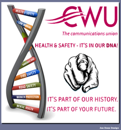 But it must not be forgotten that, if it were not for this group of dedicated individuals; Health, Safety and Environmental organisation in the CWU would be even further watered down from being the smallest department with the smallest budget, and would see these worker's rights and concerns being overtaken by Industrial Relations and political issues completely.