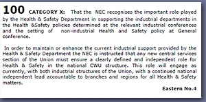 Had this not been the case, the NEC would have had their wish that the Health & Safety section at Annual Conference would have been easily abolished as no motions on health and safety could be submitted by the Union’s Regional Health and Safety bodies.