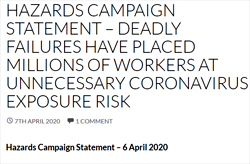 The National Hazards Campaign believes that the government, HSE and public health organisation across the four nations should be striving to ensure no more workers die of work-related Covid-19.