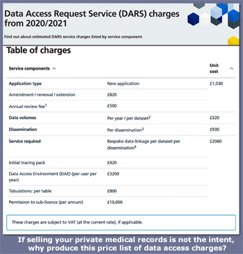 In case you find that hard to believe, this year’s price list can be seen in the pic below to the left – Click to enlarge - for the data already held centrally, such as that of your hospital visits. Did you have any idea your medical data was worth so much... or so little?