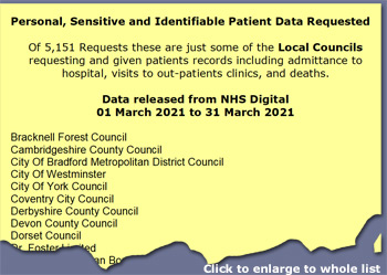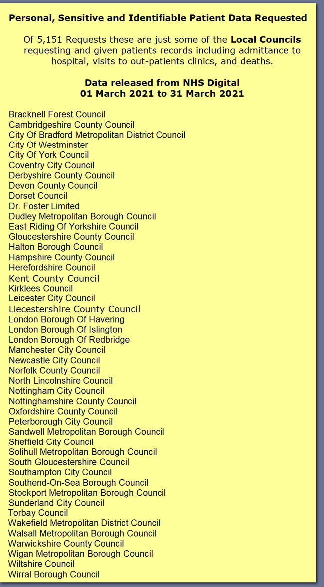 The Pandemic used as an excuse to collect and provide access to near-real-time patient’s data from GP Practices to NHS Digital who then share it with local authorities, health insurance companies, universities and overseas organisations!