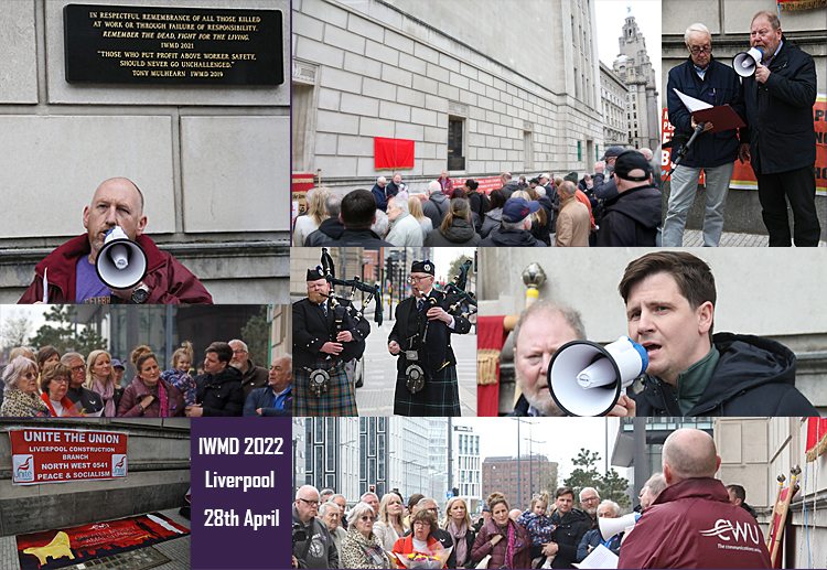 This year's speakers were, Felicity Dowling on the Covid Pandemic, and Lesley Mahmood speaking on the abolition of the #NHS and the principle of universal healthcare. Jamie McGovern spoke on the need for worker's suicide prevention. The meeting was again chaired by Roger Philips. You can watch all three speakers by using the links below: On International Worker’s Memorial Day We Will Now Commemorate The Death Of The NHS - Lesley Mahmood IWMD 2022 Liverpool - The Criminality Of The Tory Covid Profiteering That Cost Lives - Felicity Dowling IWMD 2022 Liverpool Event Announces CWU Campaign On Workplace Suicide Prevention - Jamie McGovern