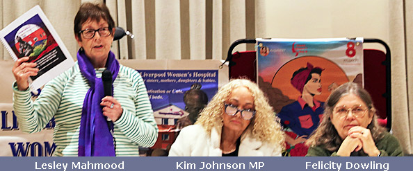 Lesley Mahmood, a long standing campaigner and, again a founding member of the SLWH Campaign Group, spoke of the campaign and the need for the public to promote the issues of the campaign, educate both the public and NHS clinical and clerical staff as to the true facts of the closure plans of the ICB for the Liverpool Women's Hospital; and to respond to the distortions and lies issued to NHS staff and their Unions, the leaders of whom seem to be ignorant of the realities; and the huge damage to women's Health and maternity healthcare which will occur as a result of these plans by the Cheshire and Merseyside ICB. The bottom line is that more babies being each year will die, and more mothers will die or be maimed mentally and physically during childbirth; in Merseyside, Wales, and the Isle of Man - all areas that the Liverpool Maternity Hospital currently takes provides maternity and gynaecological services to! Introduced by Kim Johnson MP, chair of the meeting, Lesley presented the truth of the lack of understanding of NHS staff and their Trade Unions: