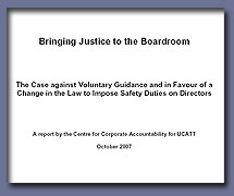 A new report by the Centre for Corporate Accountability sets out how many of the arguments used by the HSE to support the introduction of voluntary guidance for directors on health and safety responsibilities, without first changing the law to impose safety obligations upon them, are misleading.