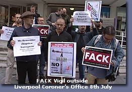 On the day of the Coroners hearing, July 8th , they and Families Against Corporate Killing, held a vigil outside the coroner's court in Old Hall Street in Liverpool's business quarter, witnessed by the TV and print media and those heading into work.