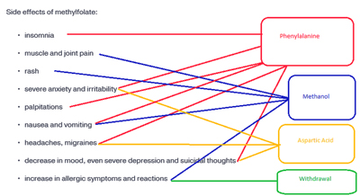 - The Side effects of supplemental bio-active folate look a lot like aspartame.5